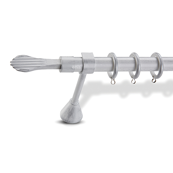 Μεταλλική κουρτινόβεργα Enis σφυρήλατη, Δόρυ σε μονή βέργα, διπλή βέργα ή διπλή με σιδηρόδρομο σε διάφορες διαστάσεις. Η διάμετρος της βέργας είναι Ø25mm και περιλαμβάνει έως 3 στηρίγματα ανάλογα με την διάσταση.