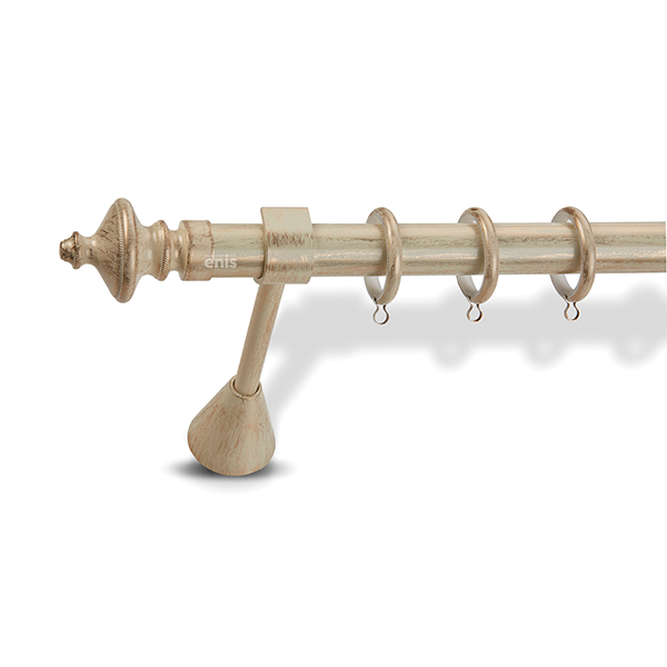 Μεταλλική κουρτινόβεργα Enis σφυρήλατη, Καναλάζ σε μονή βέργα, διπλή βέργα ή διπλή με σιδηρόδρομο σε διάφορες διαστάσεις. Η διάμετρος της βέργας είναι Ø25mm και περιλαμβάνει έως 3 στηρίγματα ανάλογα με την διάσταση.