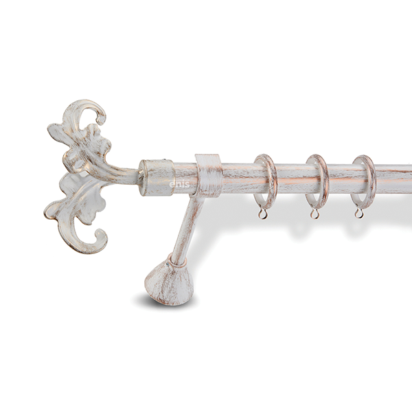 Μεταλλική κουρτινόβεργα Enis σφυρήλατη, Ποσειδώνας σε μονή βέργα, διπλή βέργα ή διπλή με σιδηρόδρομο σε διάφορες διαστάσεις. Η διάμετρος της βέργας είναι Ø25mm και περιλαμβάνει έως 3 στηρίγματα ανάλογα με την διάσταση.