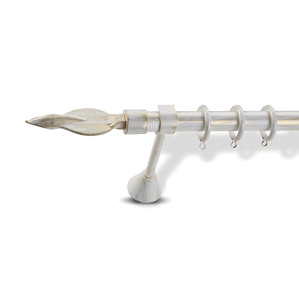 Μεταλλική κουρτινόβεργα Enis σφυρήλατη, Βέλος σε μονή βέργα, διπλή βέργα ή διπλή με σιδηρόδρομο σε διάφορες διαστάσεις. Η διάμετρος της βέργας είναι Ø25mm και περιλαμβάνει έως 3 στηρίγματα ανάλογα με την διάσταση.