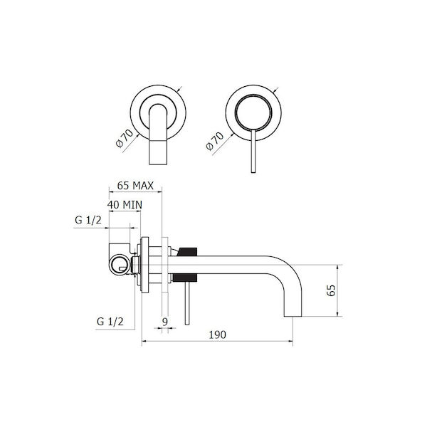 Μπαταρία νιπτήρος εντοιχισμού 2 οπών με βαλβίδα clicker της σειράς Lab, βάθους 190mm σε διάφορα χρώματα.