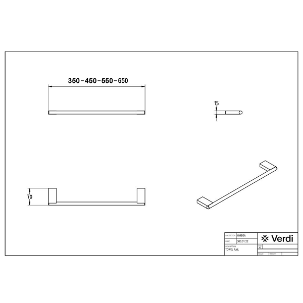 Πετσετοθήκη Μονή Omega σε χρώμιο, διαφόρων διαστάσεων