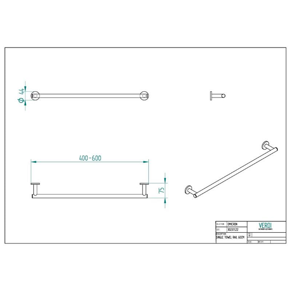 Πετσετοθήκη Μονή Omicron σε χρώμιο, διαφόρων διαστάσεων