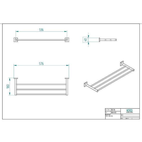 Μήκος: 580mm / Βάθος: 180mm / Ύψος: 40mm