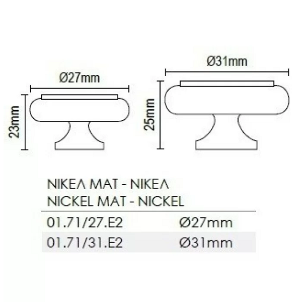 Πομολάκι επίπλου διάστασης Ø27mm ή Ø31mm