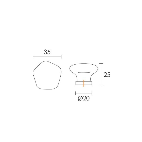 Πομολάκι επίπλου διάστασης 35x25mm και διαμέτρου Ø20