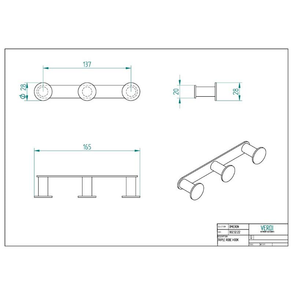 Τριπλό Άγκιστρο Omicron σε χρώμιο, διαστάσεων:
