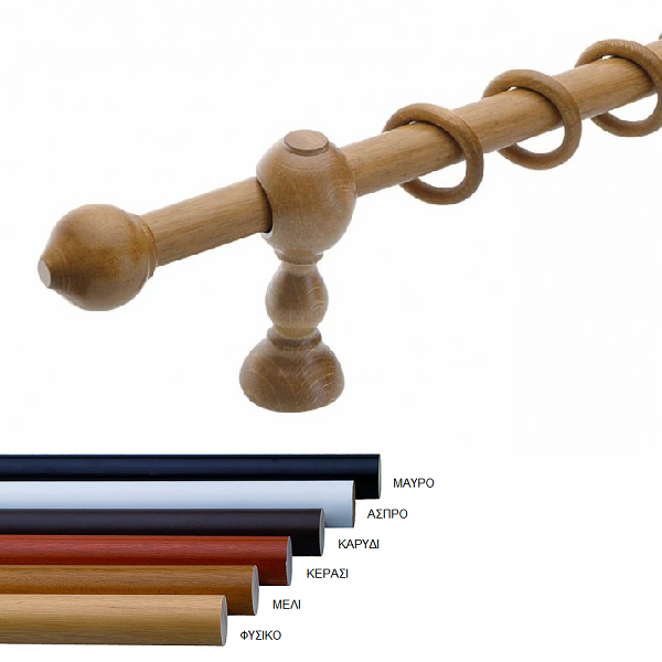 Ξύλινο κουρτινόξυλο Ø23mm Κλασικό