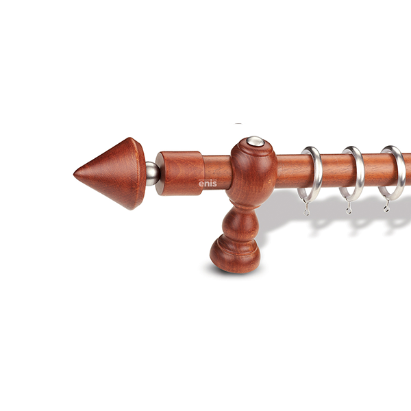 Ξύλινο κουρτινόξυλο Κώνος Μπίλια σε διάφορα χρώματα με μεταλλικά εξαρτήματα πολλών αποχρώσεων, μονής βέργας με διάμετρο κονταριού Ø35mm.