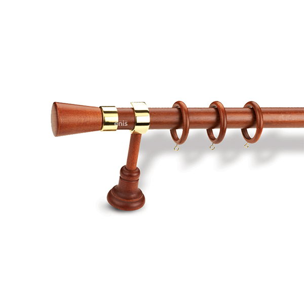 Ξύλινο κουρτινόξυλο Βέρμιο σε διάφορα χρώματα με μεταλλικά εξαρτήματα πολλών αποχρώσεων, μονής βέργας με διάμετρο κονταριού Ø35mm.